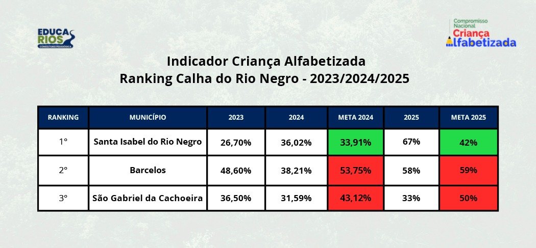 Santa Isabel do Rio Negro (AM) – O município de Santa Isabel do Rio Negro alcançou um marco importante na educação ao registrar 67% de crianças alfabetizadas, superando o índice nacional, de 64%, e a meta individual estipulada, de 42%.